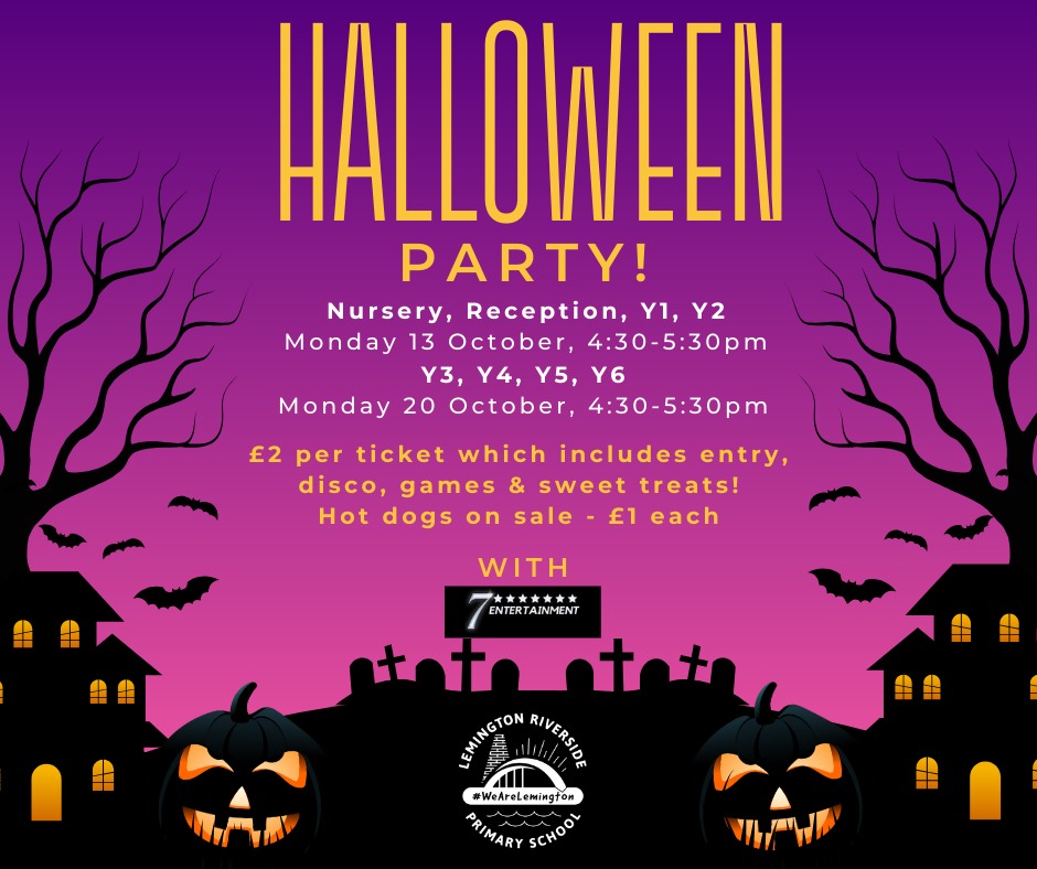 We are pleased to confirm that we will be hosting Halloween parties for our children at Lemington Riverside on the following dates: