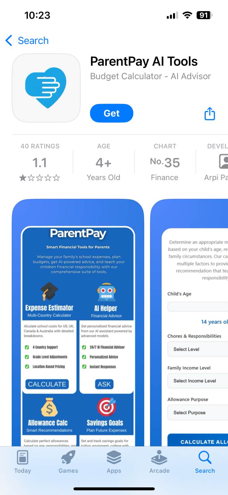 For clarity, there is NO app for ParentPay and you should not download the app.